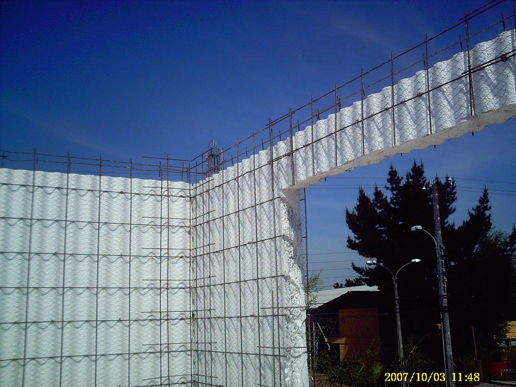 Estructura de alambres de acero. Unión de paneles en esquina, muro-muro, muro-losa, en parte exterior de las uniones.